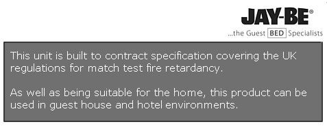 The water resistant features of the mattress make this guest bed the ideal choice for guest houses and care homes. This model is covered by Jay-be's 5 year frame guarantee for complete peace of mind.