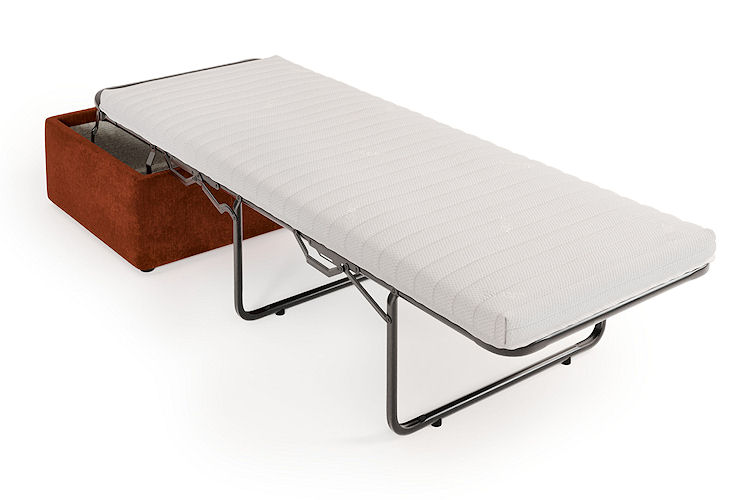 The Jay-be Footstool Bed is a stylish footstool which cleverly conceals a useful fold out bed for your guests. Upholstered in a wide choice of high quality fabrics, matching up to your existing decor should be a breeze !