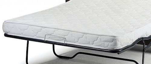 Conversion is a simple matter of removing the seat cushions to reveal the sturdy metal bed mechanism which rolls out in seconds - folding the bed away again after use is just as easy. The comfortable quilted mattress uses a high resilience foam core to give a depth of @10cm.